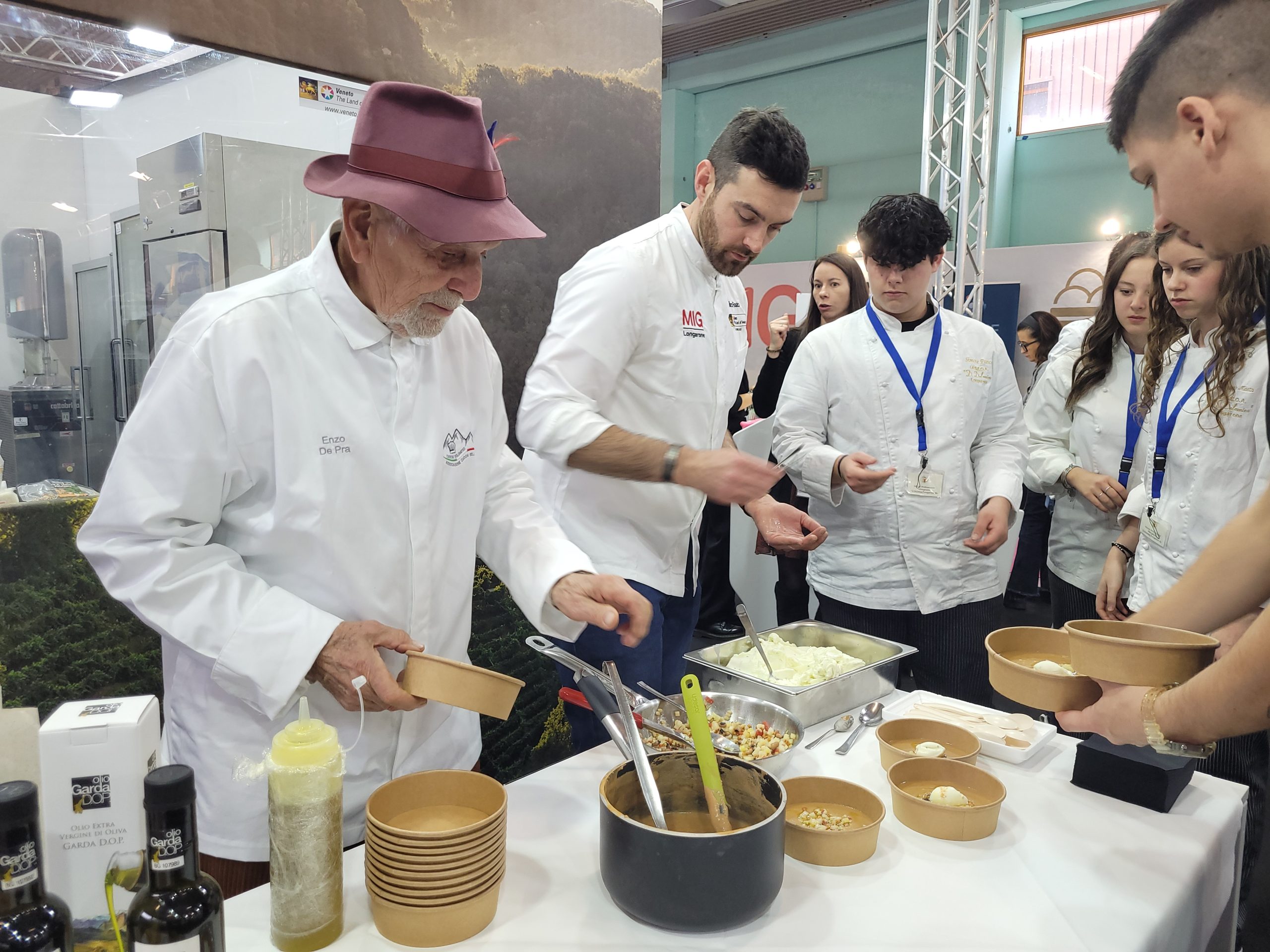 La seconda giornata ha visto lo stand della Regione del Veneto protagonista di due straordinarie interpretazioni del gelato gastronomico. Con il gelatiere Thomas Gallonetto e lo chef Marco Menegon abbiamo Riso del delta del Po IGP, crema di. Marroni di San Zeno DOP, radicchio rosso di treviso IGP e spuma al Formaggio Piave DOP. Ad accompagnare il piatto un gelato al formaggio piave DOP e Radicchio rosso di Treviso. Mentre il gelatiere Marco Reato e lo chef stellato Enzo De Prà ci hanno deliziato con la Patora, tradizionale zuppa di fagioli di Lamoncon brunuase di verdure. Questo piatto è stato completato con un gelato all’ Olio extra vergine di Oliva del Garda DOP e rosmarino.