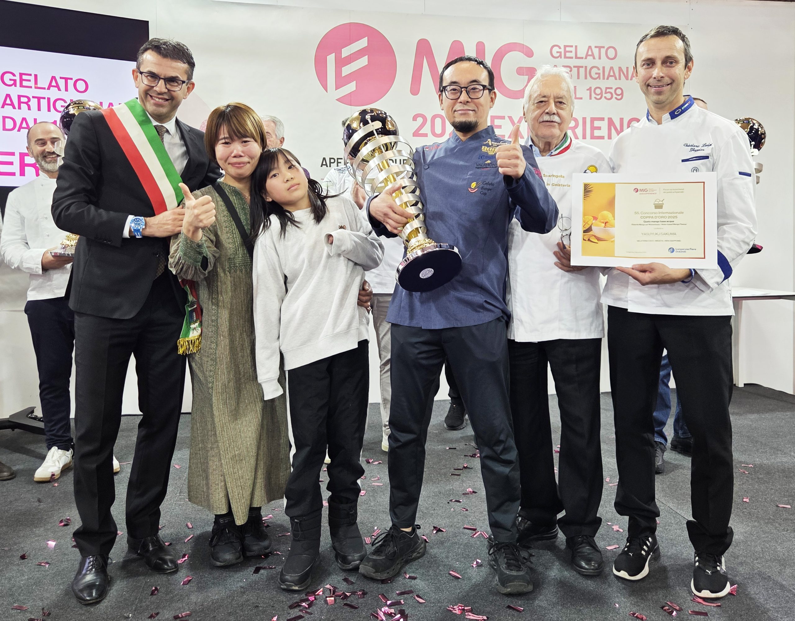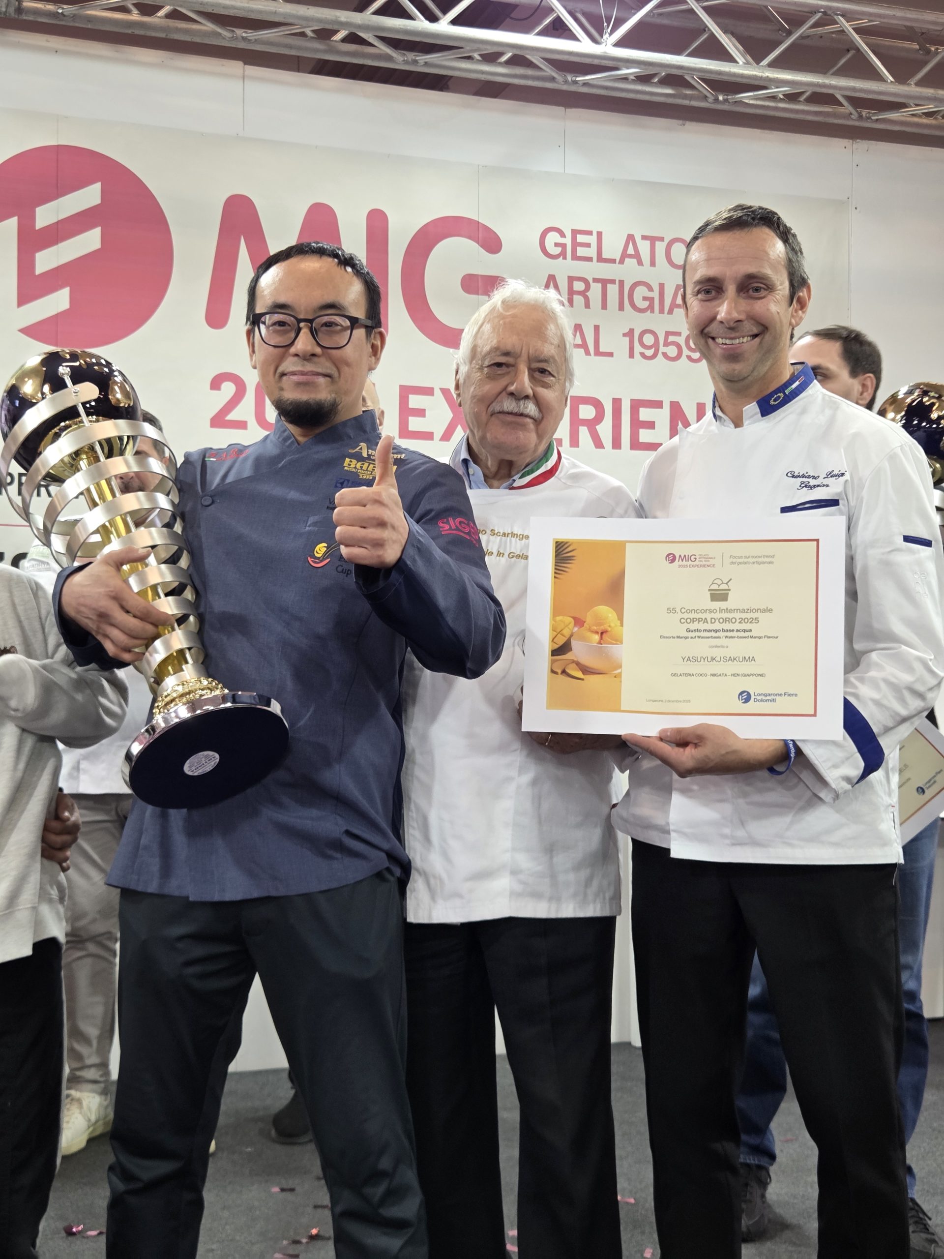 Il miglior sorbetto al mango del mondo è quello di Yasuyukj Sakuma. Il gelatiere giapponese proprietario del locale “COCO” di Nigata-Hen in Giappone si è aggiudicato la 55. Coppa d’Oro a MIG Experience 2025, che quest’anno era incentrata sul gusto mango a base acqua. È la prima volta che il premio arriva nella terra del Sol Levante, che quest’anno vedeva ben otto rappresentanti competere per l’Oscar mondiale del gelato artigianale. “Sicuramente una felicità immensa mi accompagnerà per tutto il viaggio di ritorno” ha detto Sakuma.