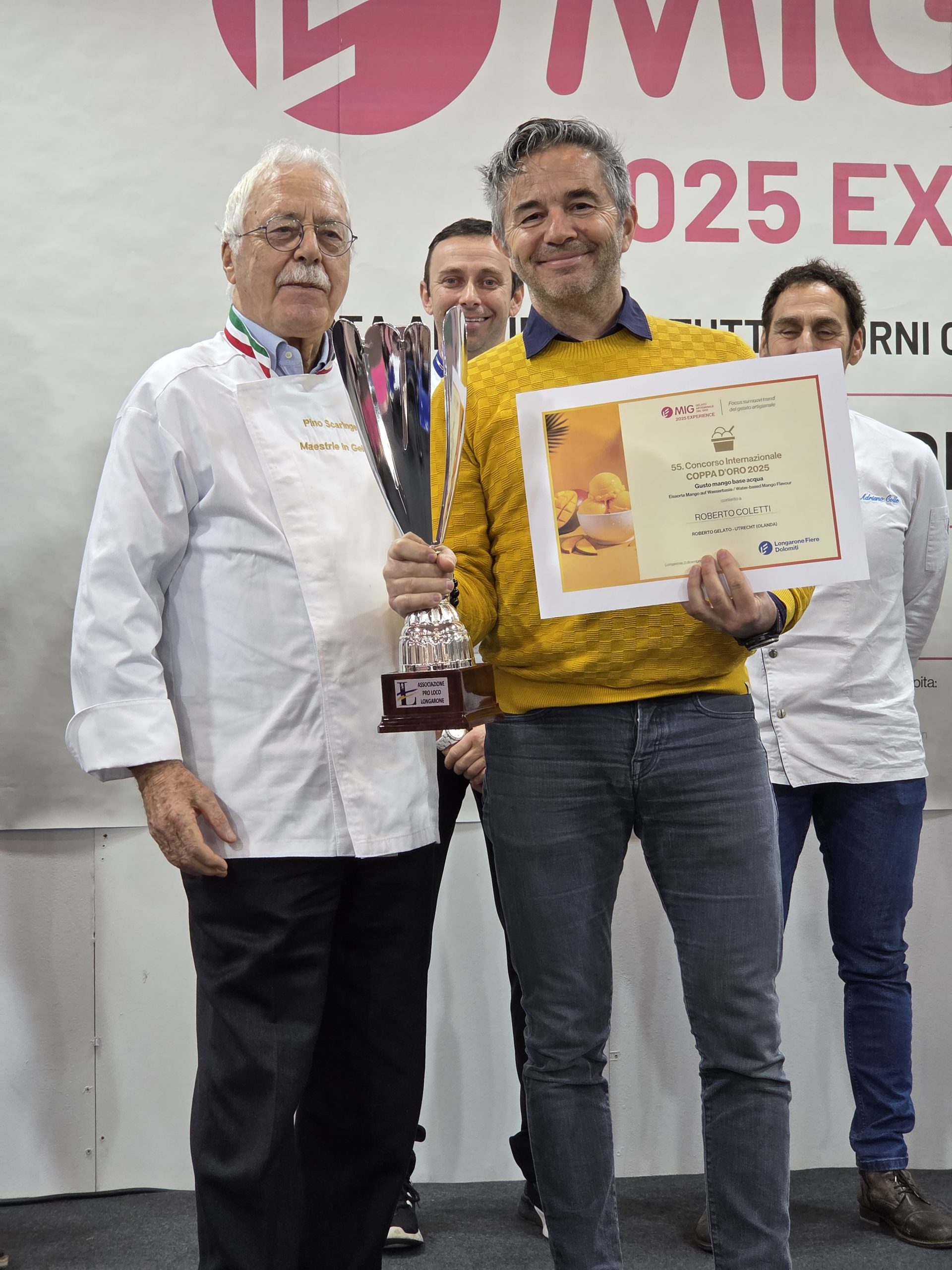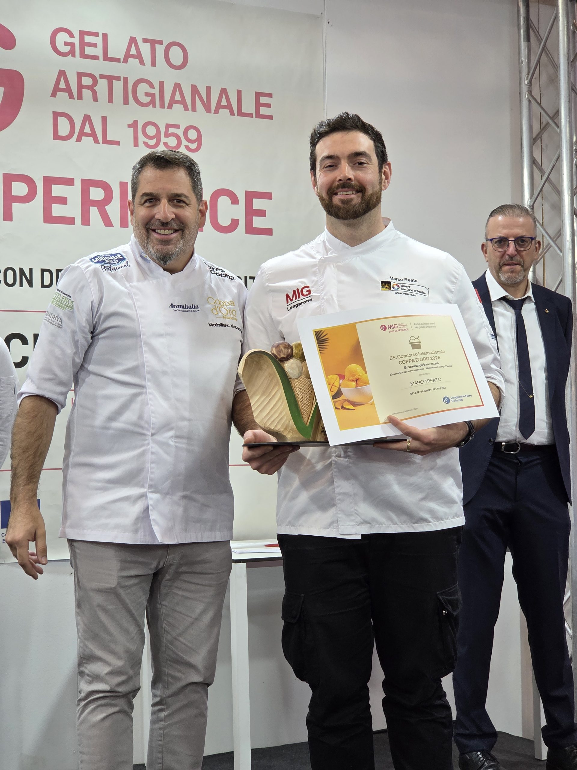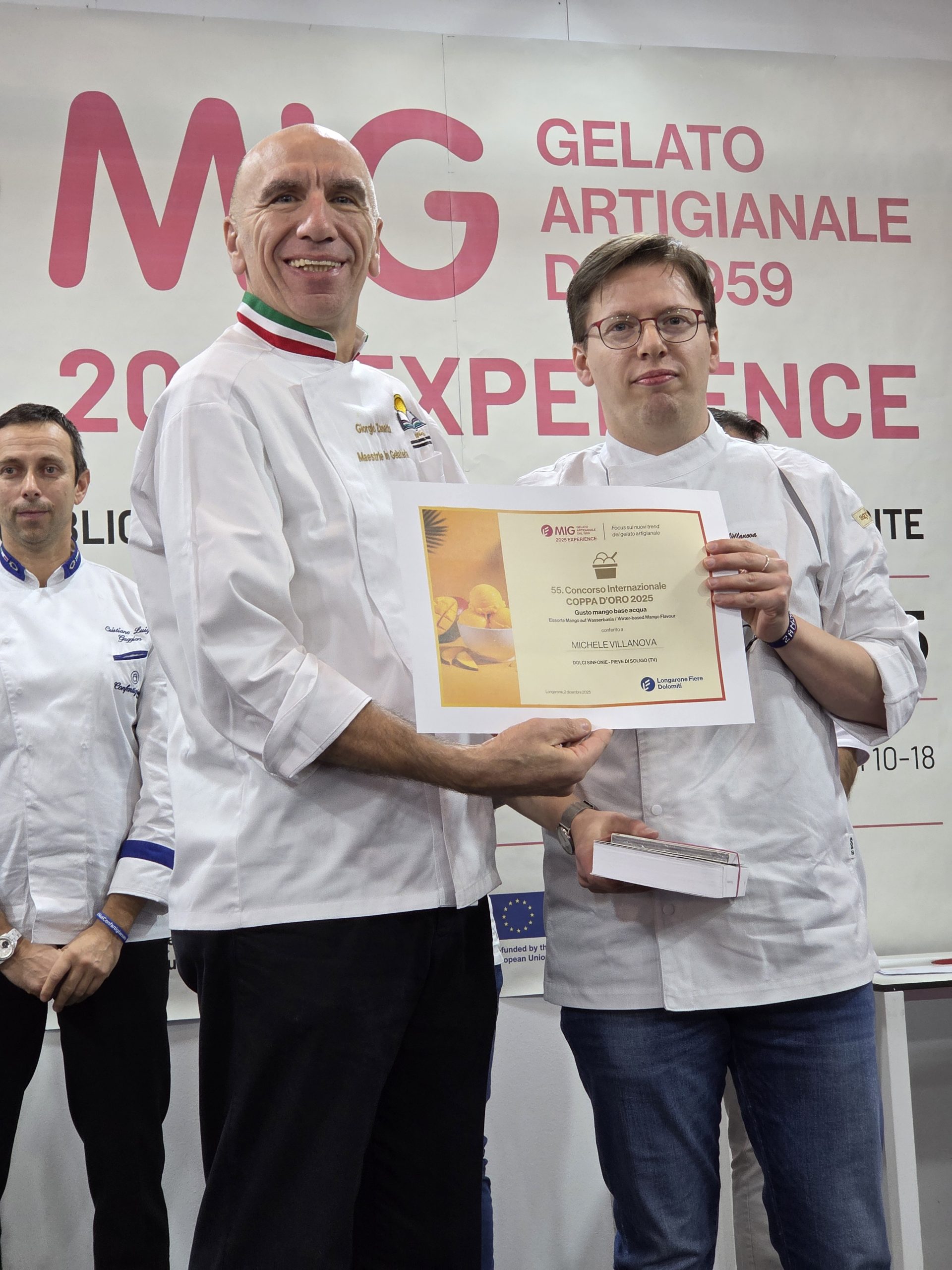 A seguire sul podio si è piazzato Giovanni Talo della “Gelateria Giovanni + Kerstin” di Osnabrueck (Germania). Terzo posto a Michael Grandelis della “Gran Delice” di Padova. Mentre il primo posto Under32 è andato al giovanissimo Davide Bonaventura della gelateria “Dassie Verogelato Artigiano” di Montebelluna (TV).