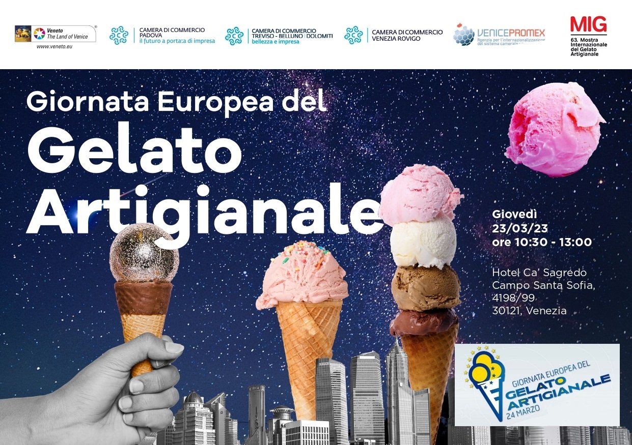 La celebrazione ufficiale della Giornata europea del Gelato Artigianale in Veneto è organizzata da VenicePromex e Longarone Fiere Dolomiti a Venezia con il supporto della Regione Veneto.
