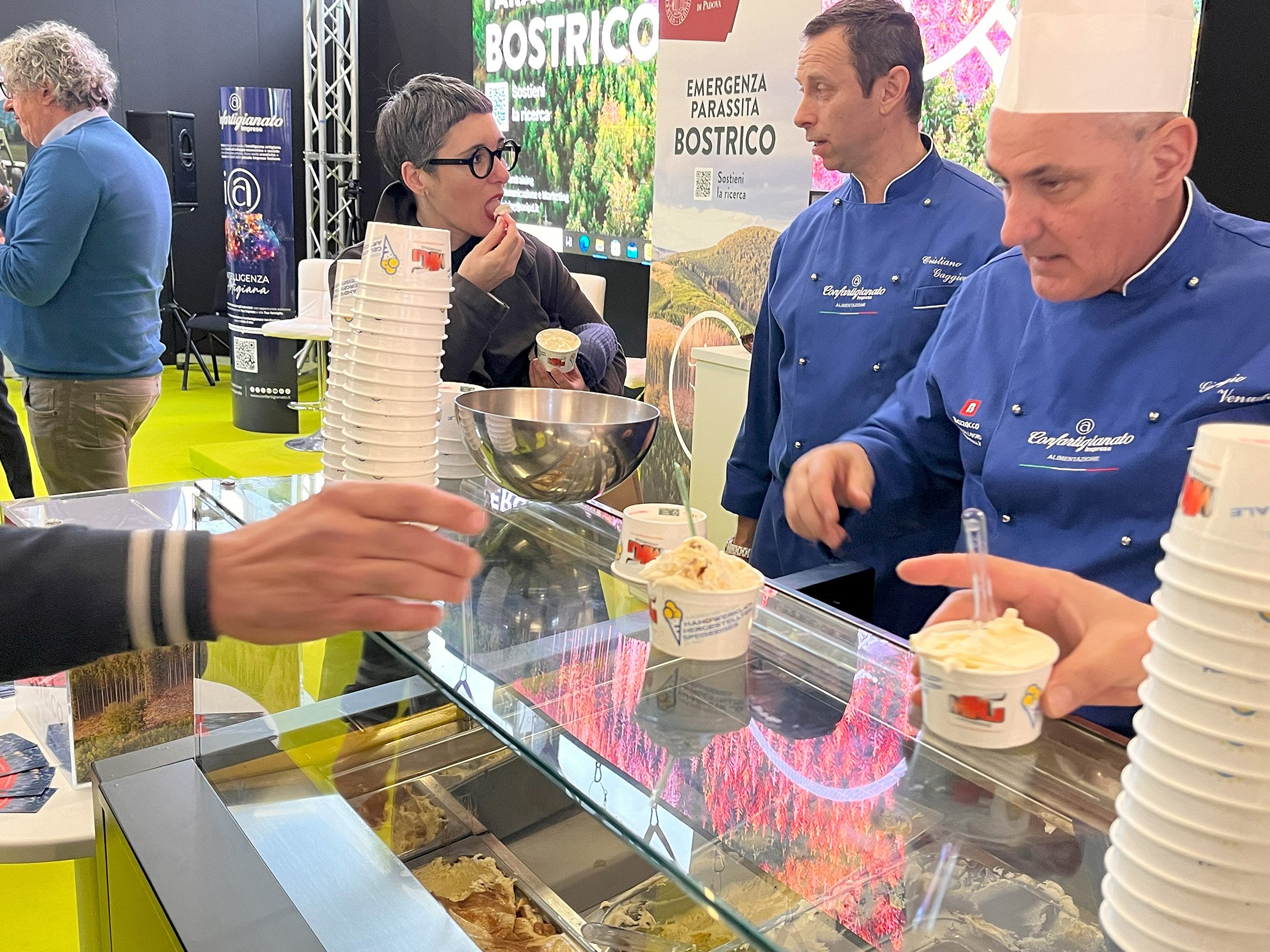 Gelato artigianale come racconto del territorio e di un know-how storico. Ma anche come strumento per aiutare il bosco malato di bostrico. È questo il filo rosso della Giornata europea del Gelato artigianale, celebrata oggi ad Agrimont, con una collaborazione tra Longarone Fiere Dolomiti, Confartigianato Veneto e l’Università di Padova a favore della ricerca scientifica.